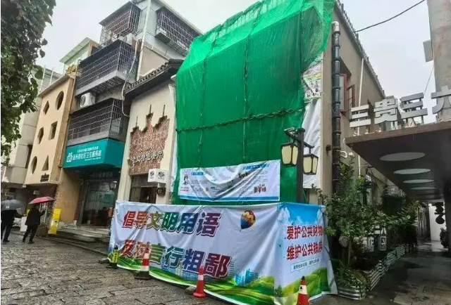 关于出事店铺的装修,周边邻居有不少话想说。这家店装修了差不多一个月,脚手架搭在外面,白天经常能看到工人在墙上打洞。有商户直接说,感觉他们装修“动静有点大”,墙体被打出洞后,里面的钢筋都露了出来。事实上,在事故发生前三天,就曾有邻居因为看到墙体钢筋裸露,向相关部门投诉过。