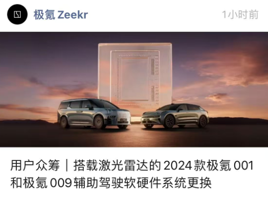 如果你也是没有搭载千里浩瀚智驾的24款极氪001/009的车主,那么恭喜你,现在机会来了!只需要众筹就可满足升级的愿望,车子再也不是出厂即定型, 就像给游戏角色换装备,官方渠道给爱车“打MOD”也太香了 老车升级变成了现实版“汽车养成游戏”,搞创新这一块儿还是得看极氪
