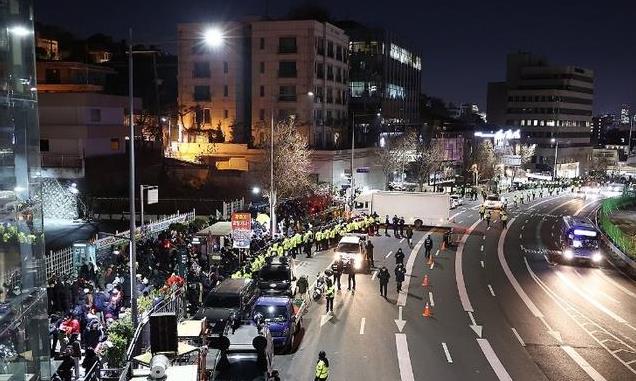 在逮捕行动的当天上午7时30分,就有约600名支持者出现在总统官邸附近游行示威,要阻止尹锡悦被逮捕;因此为了防止冲突升级,韩国警方出动了45个机动部队,每个部队60人总计2700人前往现场维持秩序,此外还有135辆机动部队大巴在现场待命,部分路段也被禁止车辆通行。