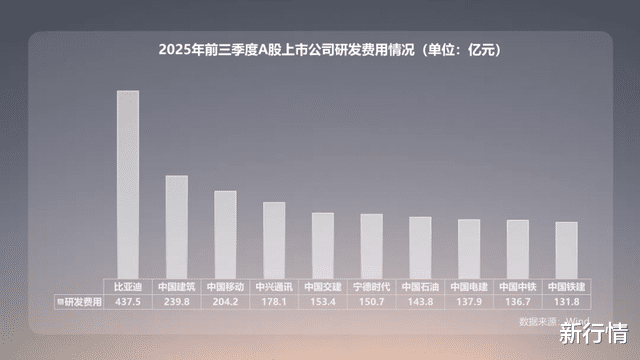 2025年前三季度,比亚迪研发投入高达437.5亿元,同比增长31%。