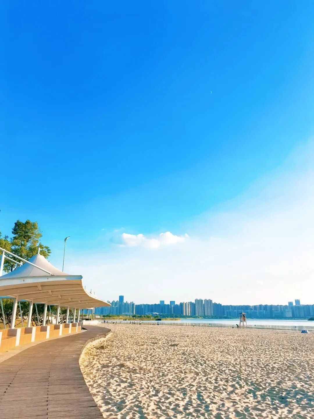 这是城市腹地的轻松挖沙选择,也是周末亲子游的热门地哦。沙滩临湖而建,视野开阔,沙层较浅,安全系数高。
