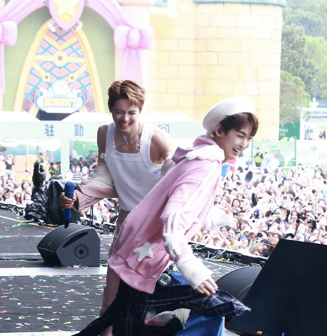 周峻纬当时正手持话筒与台下互动,唐九洲从侧方飞奔上台,双手抓住其外套下摆猛力一扯,动作流畅如排练过千遍。外套滑落的瞬间,周峻纬先是一愣,随即笑着抬脚作势要“踹”,而台下观众已集体发出海啸般的尖叫。更戏剧化的是,被扒衣的周峻纬全程未作反抗,事后在直播中自曝:“我以为他要拥抱我,连肌肉都没绷紧。”