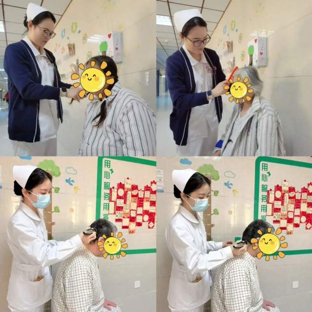 在封闭病区经常能看到这样温馨的画面:护士小姐姐变身“Tony 老师”,手持理发推子为患者修剪头发。这是精神科为特殊患者定制的“从头焕新”计划。 护士轻轻执起梳子,为老人理好鬓角的碎发;没有华丽的装饰,只有指尖相触的温度,把“敬老”的深意,藏进每一次轻柔的梳理里。