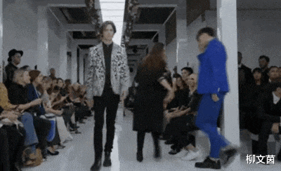 去看时装周迟到了,他就索性跟着模特走一圈,再顺势坐到自己的座位上。