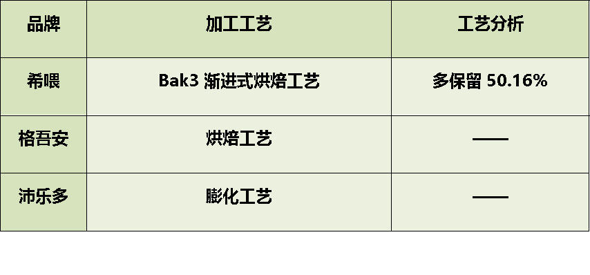 格吾安用的是烘焙工艺,低温烘烤比膨化工艺保留肉原料更多的营养。