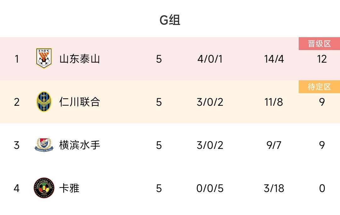 最后一轮,仁川和横滨能否出线都要看泰山的脸色。
