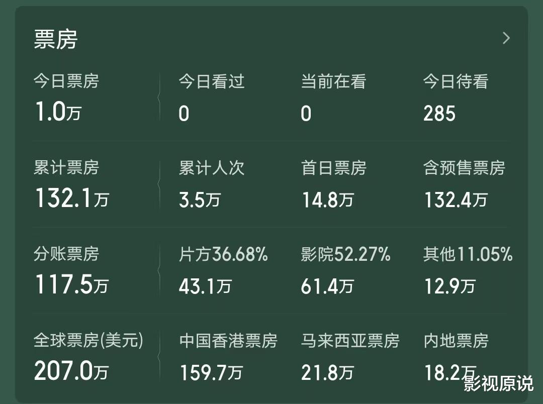 而就是这样一部在内地爆火的大陆国产片,在登陆中国香港影院后,却直接遭遇了惨败。同样一周多的时间,该片的香港总票房却才刚达到13.3万美元,换算成人民币不到100万。