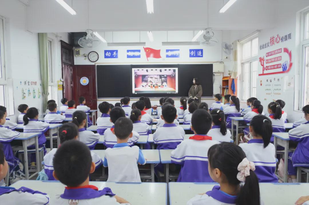 四年级同学带来诗朗诵《我爱你,中国》,用稚嫩却坚定的声音细数祖国的壮丽山河与辉煌成就。“我爱你,中国!我爱你敦煌飞天的曼舞轻歌,杭州西湖的淡妆浓抹。”一字一句满是真情,将对祖国的眷恋与自豪融入每一段旋律。师生们在班内静静聆听,不少同学轻轻跟着吟诵,真挚的情感在校园里流淌,汇聚成礼赞祖国的动人乐章。