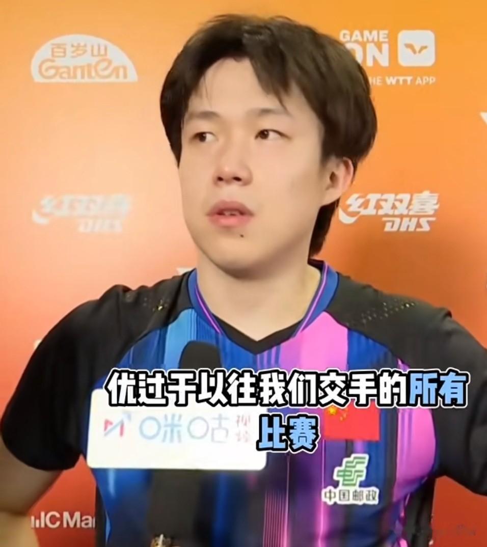 因为莎莎有比赛,所以莎莎就先走了,王楚钦一个人去采访区了,对于今晚的比赛,王楚钦总结说港队确实发挥的好,要优于以为他们交手的所有比赛,还是非常值得肯定的,楚钦是又夸了黄镇廷/杜凯琹,确实要允许对手有超长的发挥。回去好好休息,明天还有比赛,继续加油!