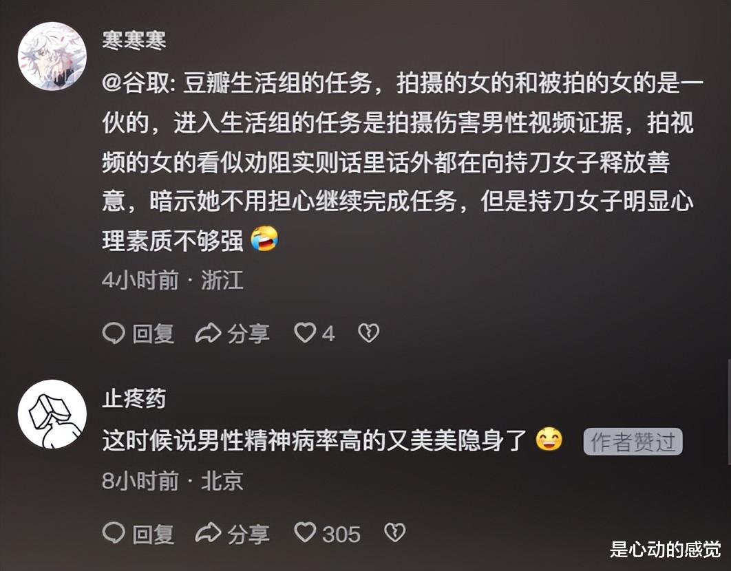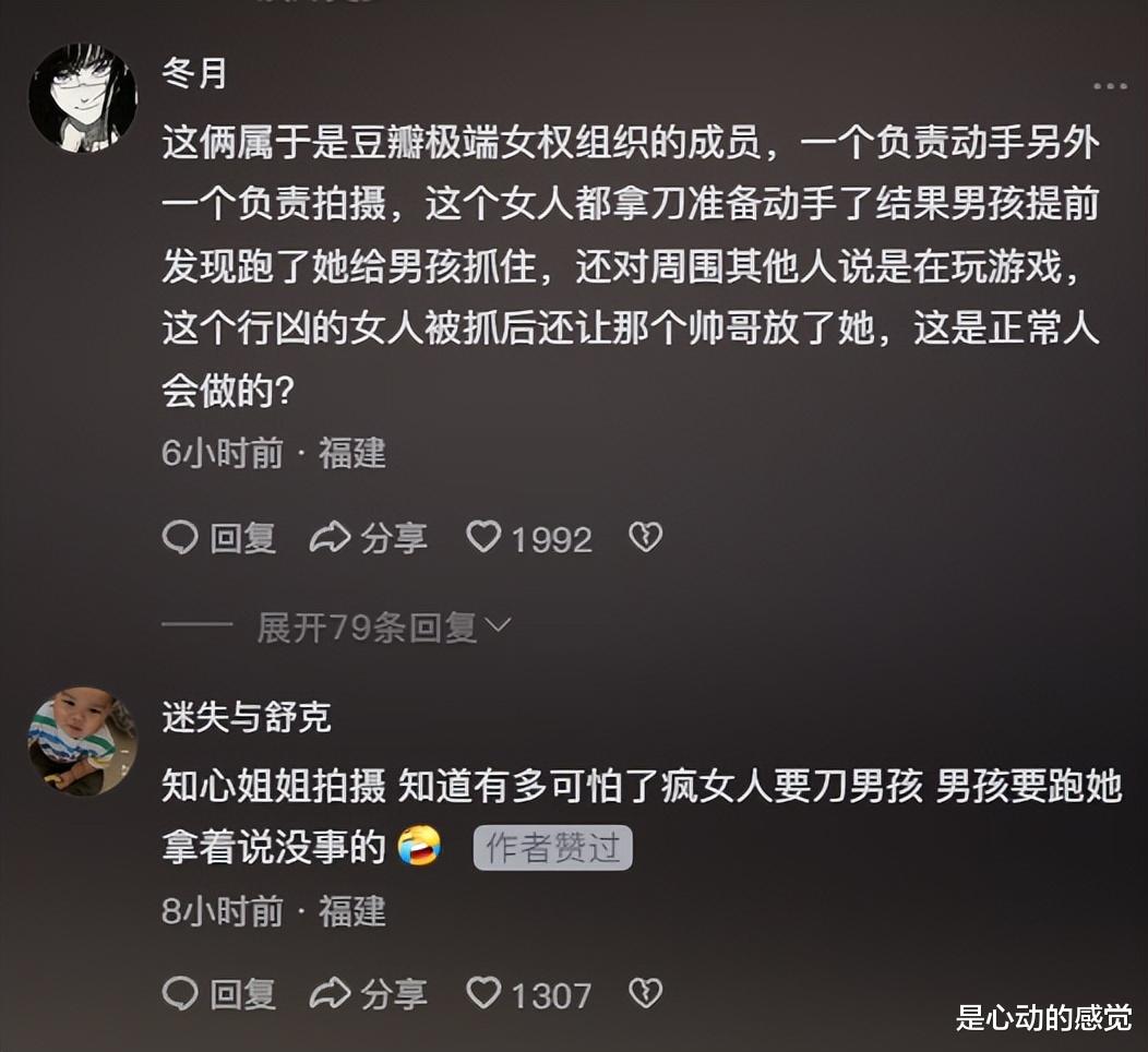 不少网友称,看样子拿刀的女子和拍视频的女子就是一伙的,疑似是某种极端组织的考核,只是后来看到事态不可控,所以才悄然离去。