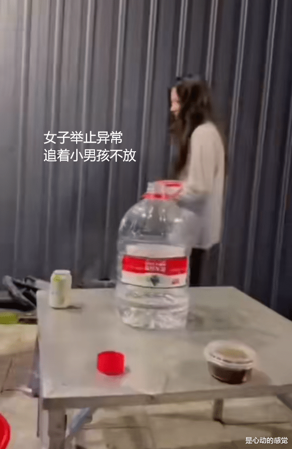 几乎就在女子薅住小男孩衣服的同时,这位举止异常的女子抓住时机快步走到跟前,并一脸坏笑的称要和小男孩玩游戏。