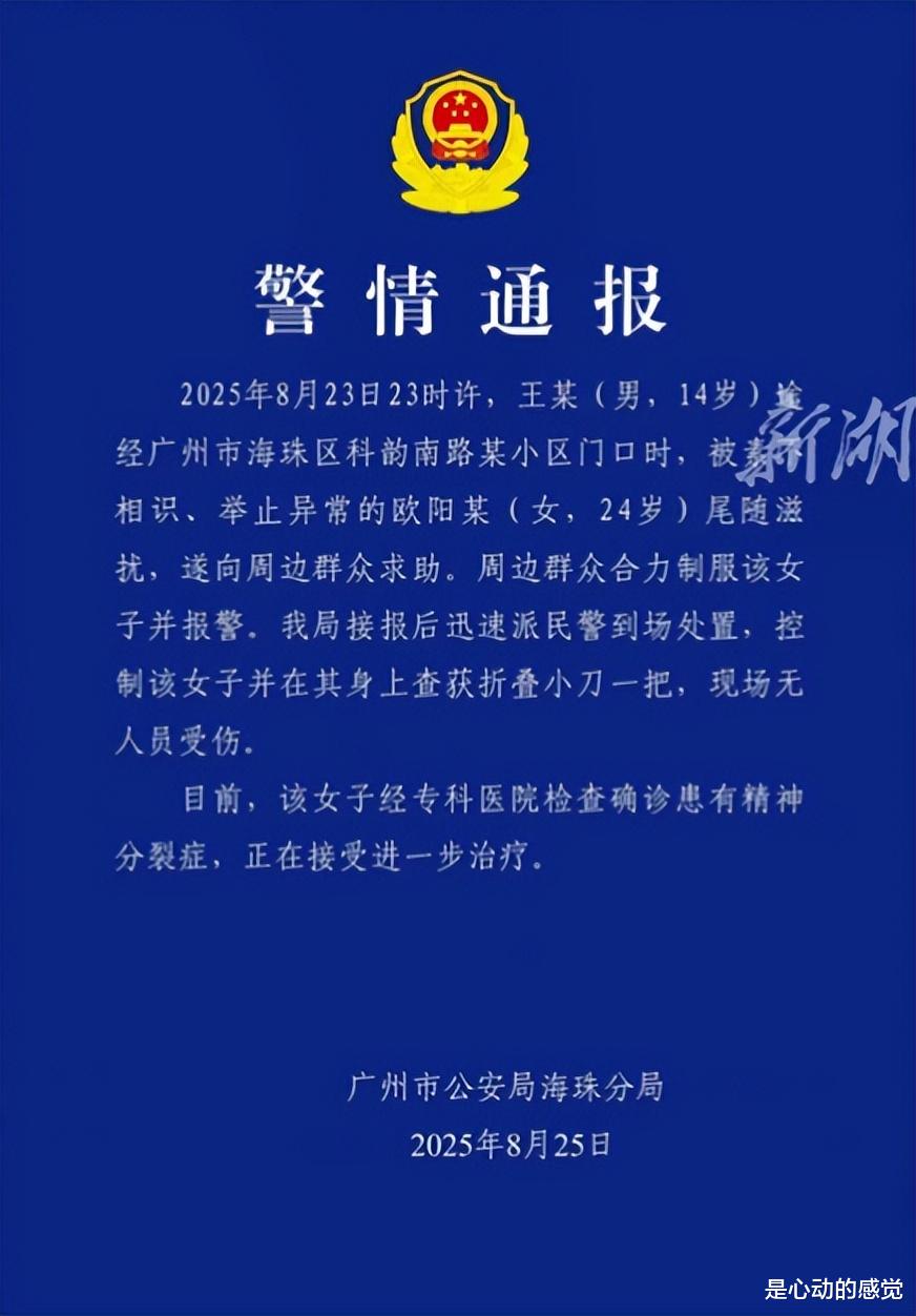 后来经过警方的调查,得知拿刀女子患有精神分裂症,幸运的是没有人员伤亡。