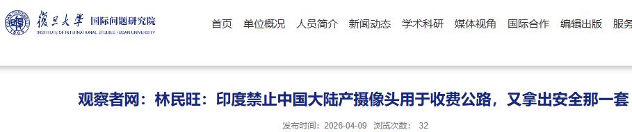 3.2026-04-09《观察者网:林民旺:印度禁止中国大陆产摄像头用于收费公路,又拿出安全那一套》-复旦大学国际问题研究院
