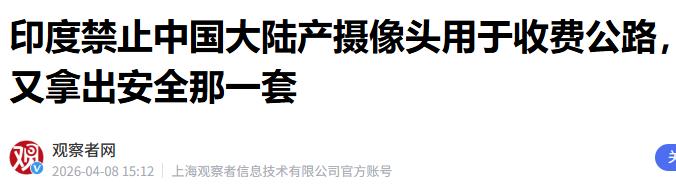 1.2026-04-08《印度禁止中国大陆产摄像头用于收费公路,又拿出安全那一套》-观察者网