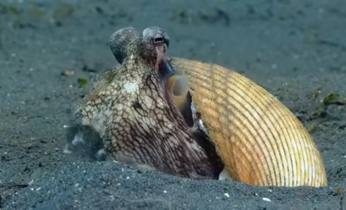 此外,章鱼还会使用工具。研究人员观察到它们会借助贝壳或椰子壳来移动和躲藏,甚至能模仿人类动作,学会拧开瓶盖。这种学习能力在无脊椎动物中相当少见。
