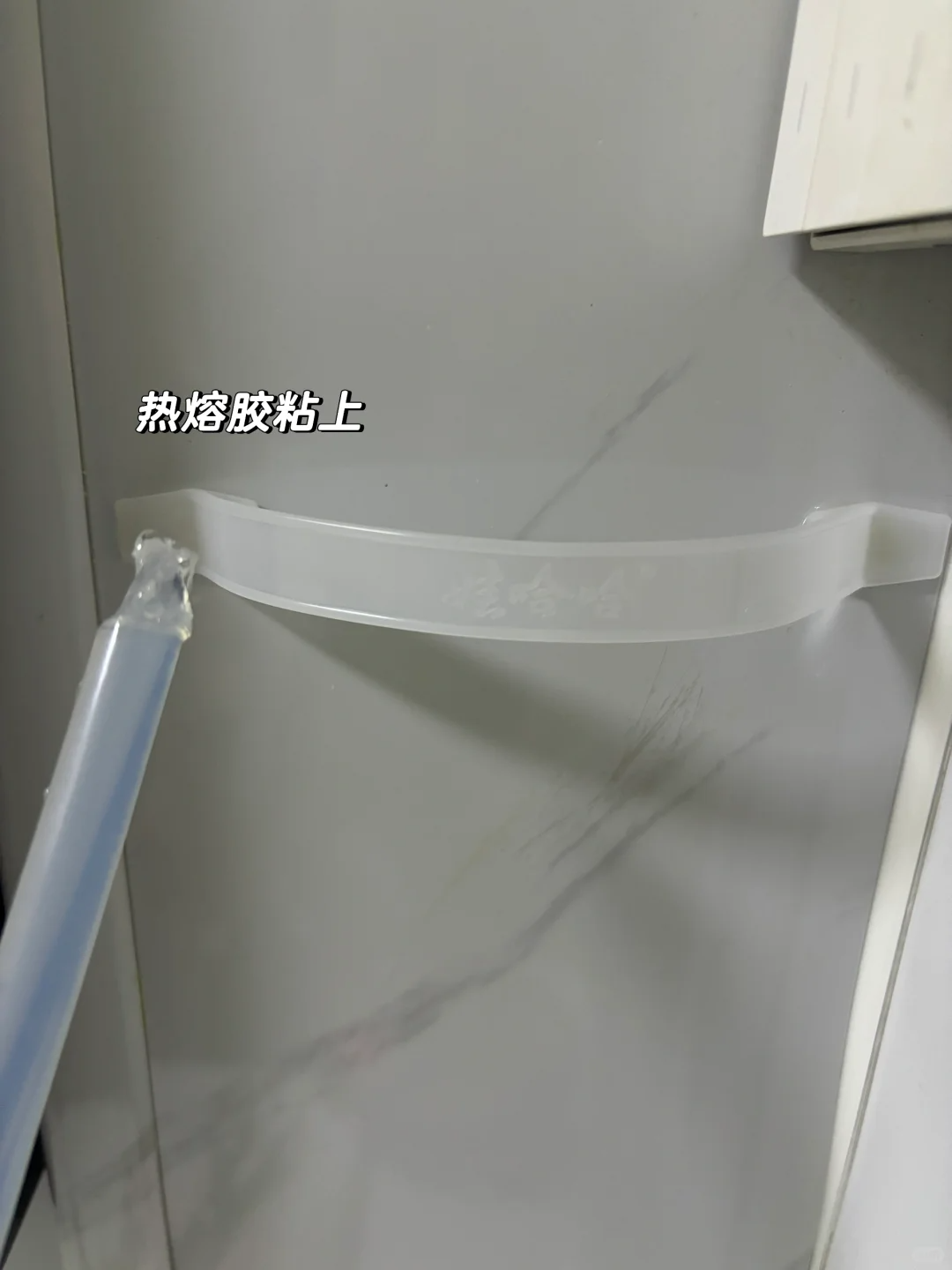 然后使用热熔胶把它粘在卫生间墙壁上,