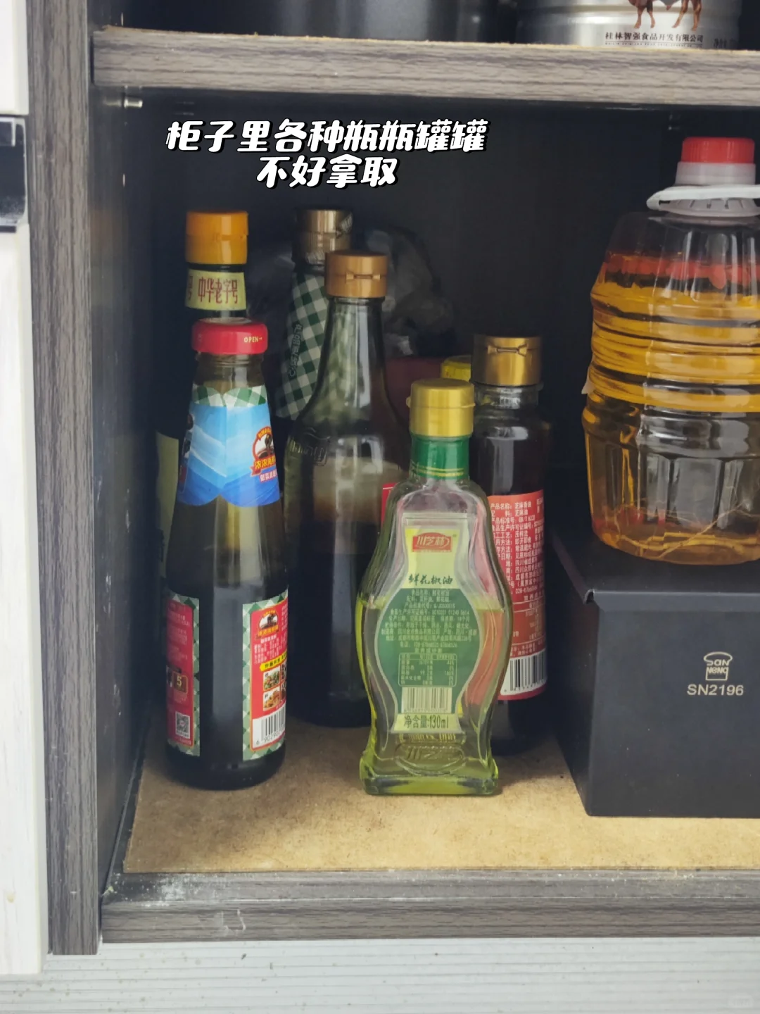 厨房的调味料,瓶瓶罐罐的不好收纳放在台面上太容易杂乱,可以将这些调味料放在收纳盒当中,但是老妈却坚持不花钱买收纳盒。