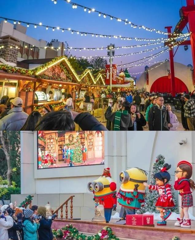 图3:11月23日,北京环球度假区开启冬日限定季节性活动“冬季假日”主题活动,活动将持续至明年1月1日。活动期间,游客可在冬季元素满满的星耀小镇边逛边吃,观看冬季限定演出,还能在好莱坞大道天棚下偶遇“降雪”。(图/北京日报)