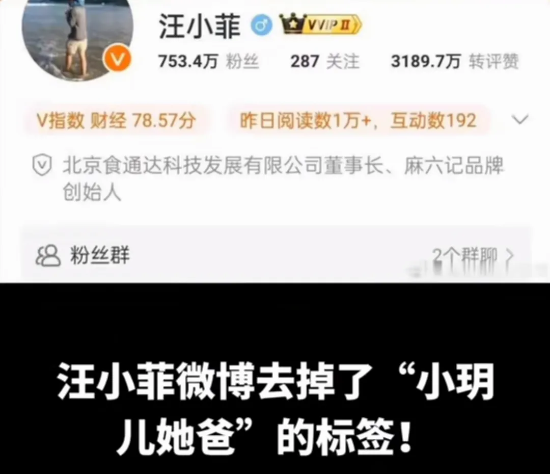 近日,汪小菲微博去掉了“小玥儿她爸”的标签,这又是一个他和湾湾那家人切割的信号。
