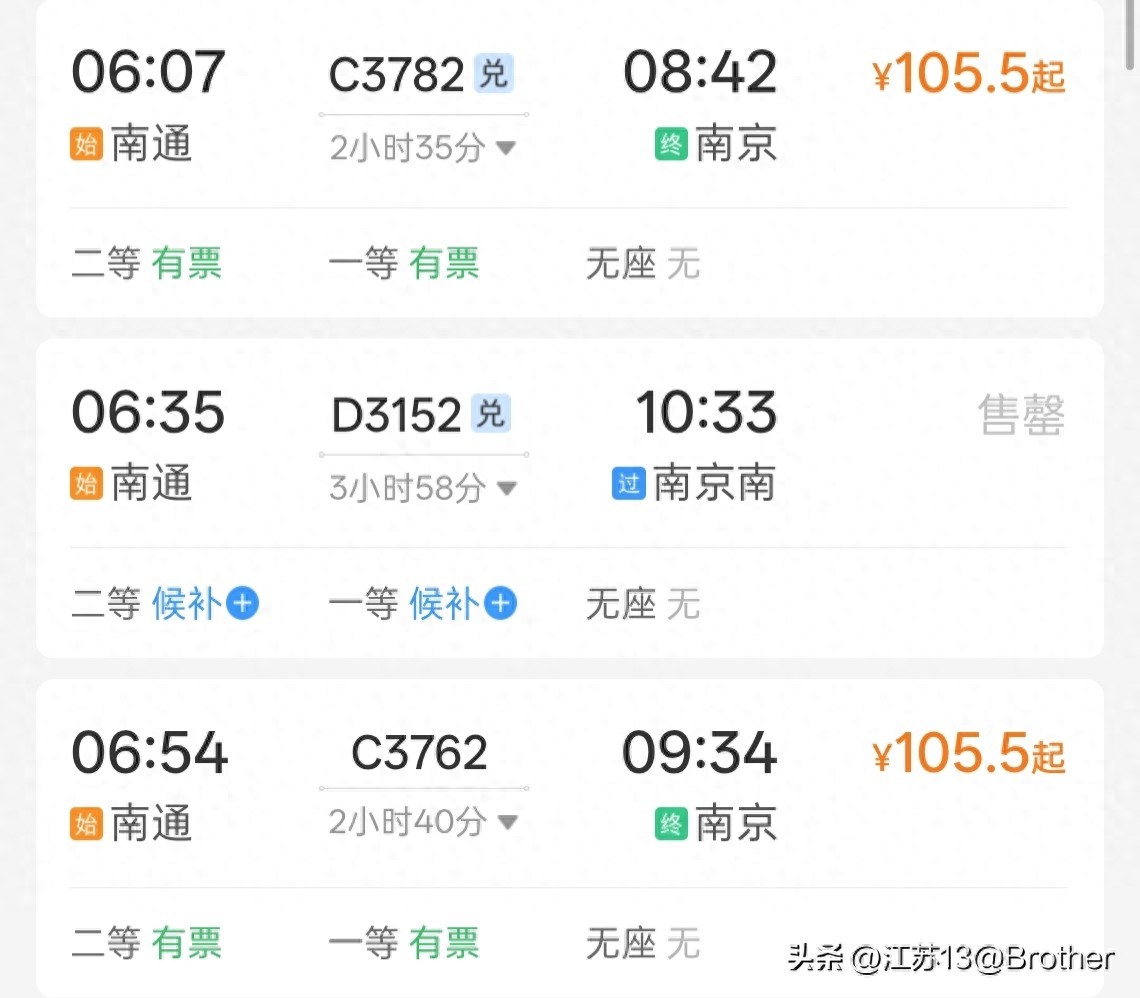 南通-南京,最早的火车,8点到!