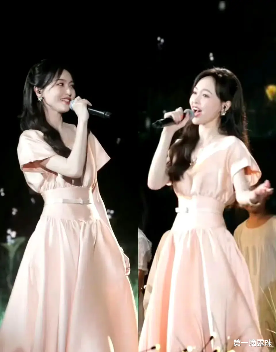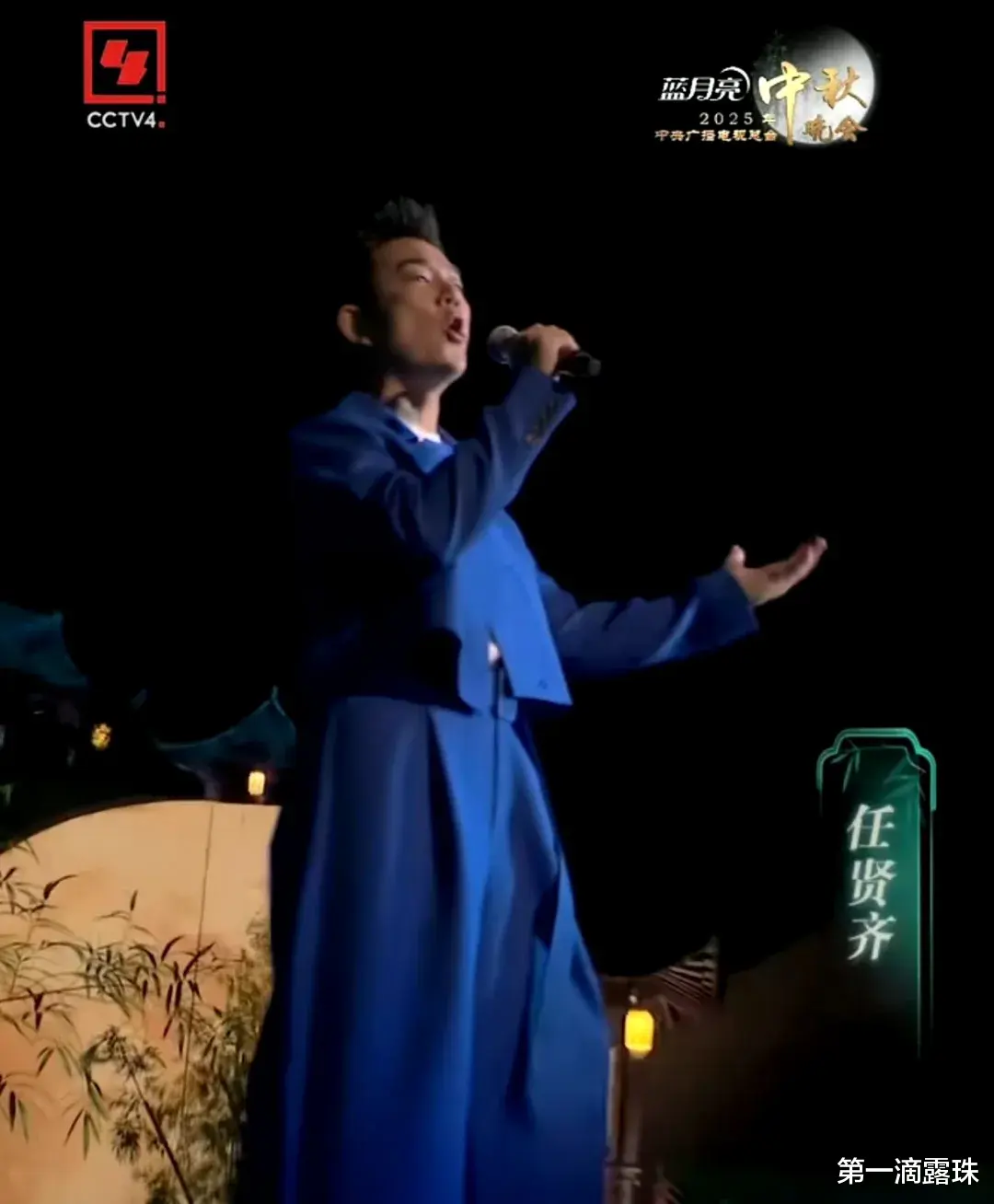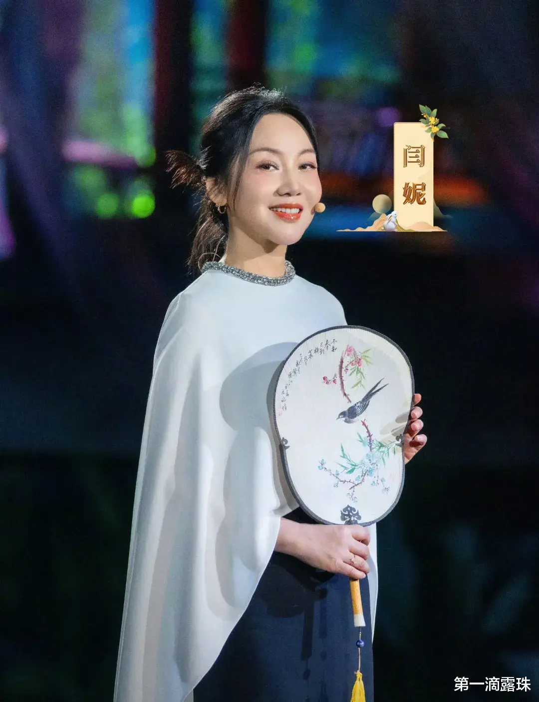 但这次在中秋晚会上,她和海来阿木合作演绎国风歌曲《只字不提》,身着黑白水墨风长裙,手持圆扇,仪态优雅端庄,演唱时表情沉稳,完全收起了 “微醺” 状态,和她之前在大湾区晚会上慵懒随性的表现相比,反差巨大。