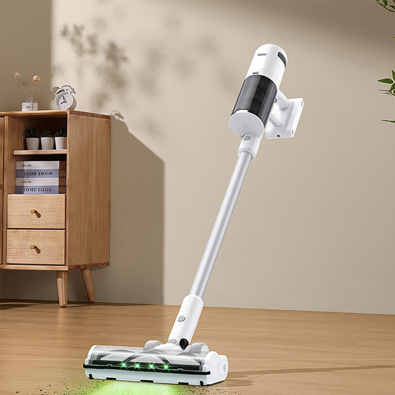 推荐理由:作为近几年的国产明星品牌,友望推出的V300家用吸尘器是他们的明星产品。机身整体采用了象牙白配色辅以黑色细节,采用金属质感工艺,整体外观看起来还是很时尚简约的。搭配新升级的绿光显尘功能,很快发现地面细微灰尘,清洁卫生更加彻底。