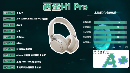 西圣H1Pro被公认为百元价位只有千元级别才有的音质听感,其声音表现被广大用户誉为目前同价位中最出色的选择。该耳机采用了2.0 SurroundWave™ 3D音场技术,能够实现超过270°的声场宽度,使音乐更加立体逼真。内置40mm超线性匀磁驱动大单元,配合双磁路双腔体和 N52 级高强度磁铁,每个音符都能得到精准展现,将最舒适度最好的音质呈现出来。不少专业测评师实测后,直接评价这款是真正把旗舰音质拉进百元档的代表。