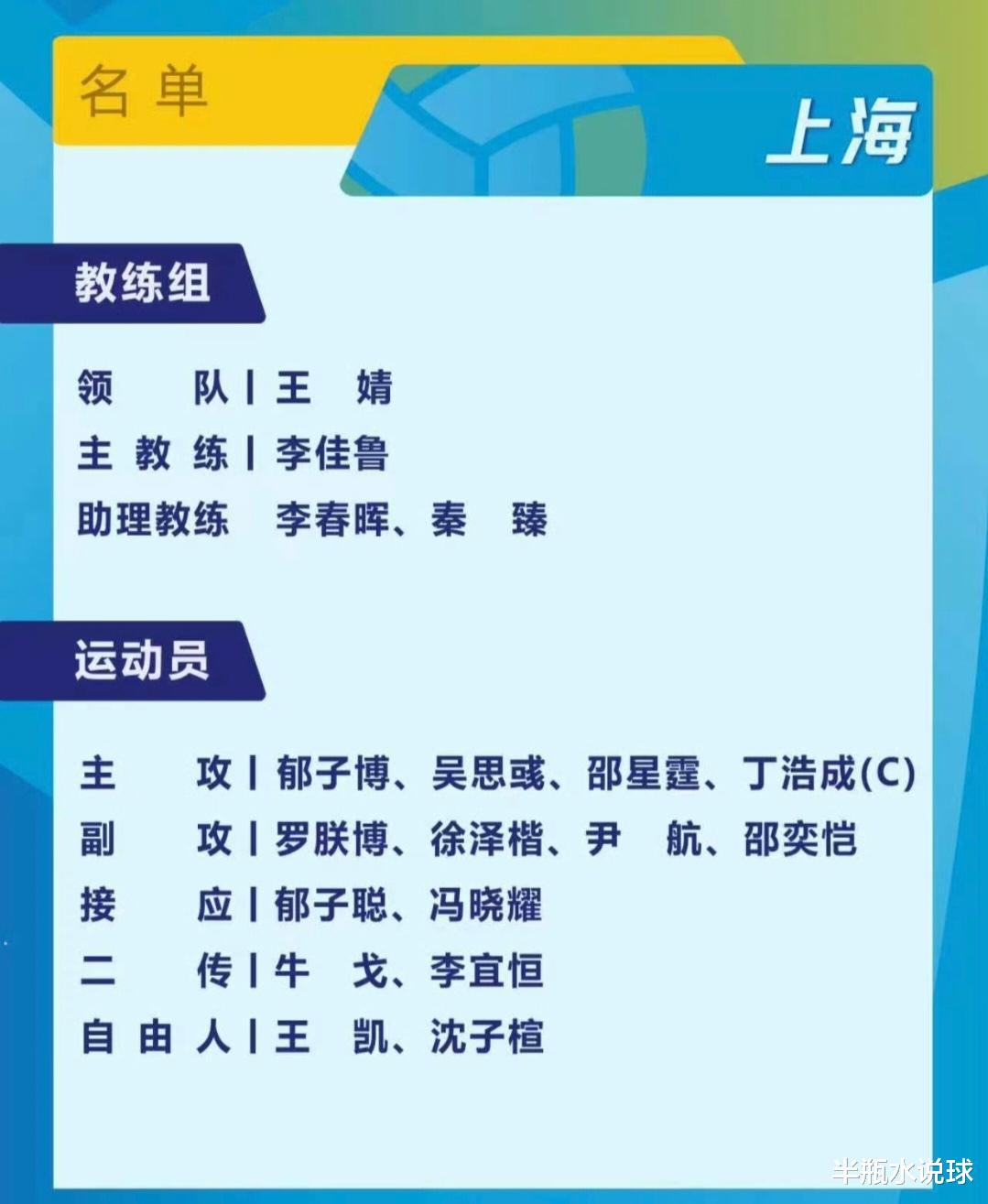 和浙江一样,上海也有四名国字号球员:U18亚锦赛MVP、国少队长丁浩成,U18亚锦赛夺冠成员副攻罗朕博和二传牛戈,U18亚锦赛、U19世锦赛主力自由人王凯。纸面实力足够强,但比赛作风却是偏软,关键时刻必掉链子,去年的三大球运动会如此,今年的全锦赛亦是这样,半决赛打山东、决赛打南京,都是自己葬送了大好局面。