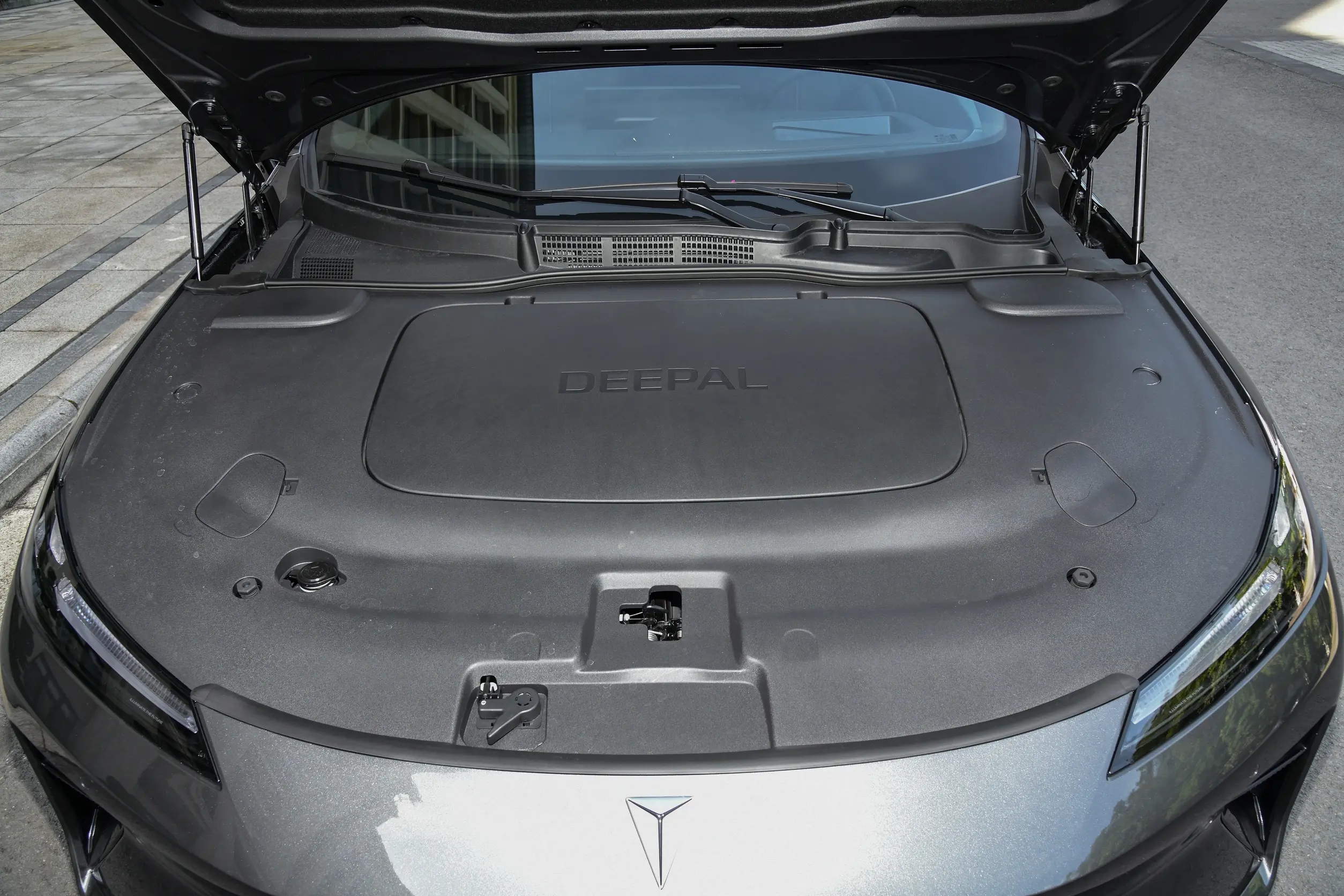 前脸横向贯通式设计拉伸了视觉宽度,分体式前大灯组(“深蓝之眼”日行灯)点亮后辨识度不低,并且纯电车型还提供了主动进气格栅(不仅能降低20Counts风阻,还能通过热交换调节电池温度,间接提升高速续航)。