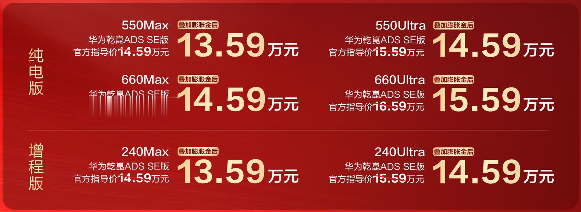 增程版车型:240Max 华为乾崑ADS SE版、240Ultra 华为乾崑ADS SE版;官方售价分别为14.59-15.59万元。纯电版车型:550Max 华为乾崑ADS SE版、550Ultra 华为乾崑ADS SE版、660Max 华为乾崑ADS SE版、660Ultra 华为乾崑ADS SE版;官方售价分别为14.59-16.59万元。另外,2026款深蓝L07还提供了“限时膨胀金(5999元抵15999元)”、“置换礼(5000元不限品牌)”、“充电礼”、“无忧礼””等限时购车政策,叠加膨胀金后限时13.59万元起。