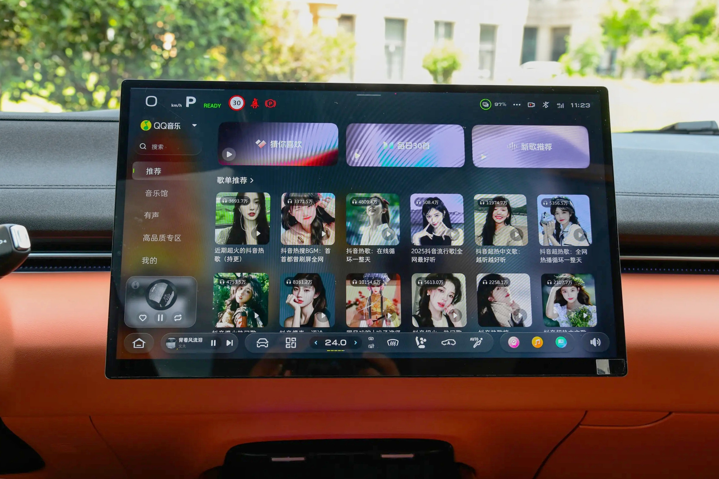 车机系统的流畅度表现不错,高通骁龙8295P芯片的算力充足,无论是多应用切换、3D图形渲染,还是语音交互响应,都没有明显卡顿,“零延迟”的交互体验基本达标。基于虚幻5引擎的3D沉浸式桌面视觉效果不俗,“千里江山图”灵感的动态水墨光影也具备一定的特色。