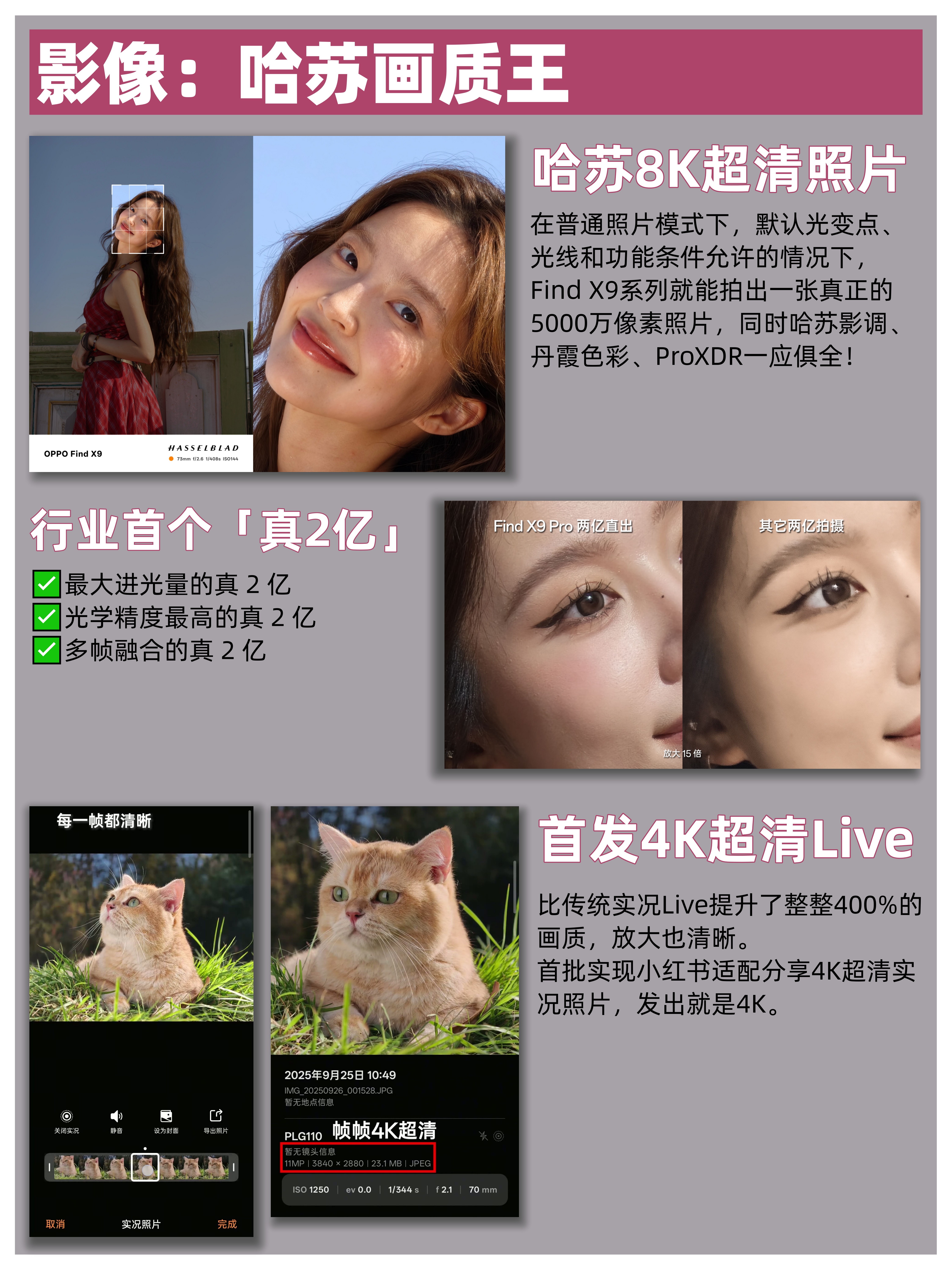 作为影像旗舰,Find X9系列在硬件配置与功能创新上也毫不含糊:全系搭载与Find X8 Ultra同款升级的「丹霞色彩还原镜头」,人像与风景拍摄色彩更真实自然;