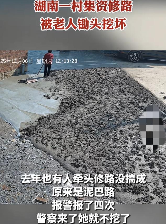 “又来挖了!刚铺的路要被她毁完了!”12月7日天刚放亮,湖南邵阳新宁县某村的李先生站在院坝里,望着村口蒸腾着热气的水泥路,嗓子都急哑了。镜头里,一位头发花白的老太正抡圆了锄头往路面凿,没凝固的水泥被挖得飞溅,每一锄下去,都像砸在全村人的心尖上。八旬老太顶着晨霜凿毁新修水泥路,这不是她第一次搅黄全村的好事。