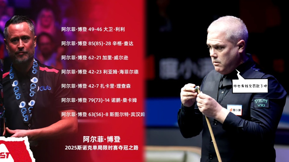 接下来休整一天之后,苏格兰公开赛将拉开序幕,作为香港大奖赛卡位赛(单赛季排名前三十二球员参赛),精彩程度会比单局限时赛强不少,截止到目前,一共只有九位中国球员暂时处于入围名单内!说起本站比赛,丁俊晖成为绕不开的话题,最近两个赛季输球后的中国一哥都在个人社交平台抨击赛事组织方的不专业(23年结束太晚打不到车24年球桌安装问题),最终收到了一纸罚单,所以这次苏格兰公开赛丁俊晖索性不参加了!