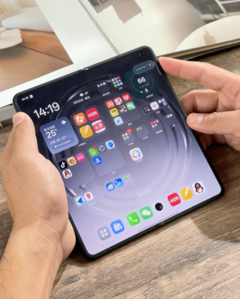 不怕你们笑话,我拿到OPPO Find N6的第一件事就是斜着屏幕、对着灯光,翻来覆去地找那条痕。结果是真找不着了! 无论是正面看、侧面看,还是用手指在屏幕中间来回划,那种视觉上的割裂感彻底消失了。