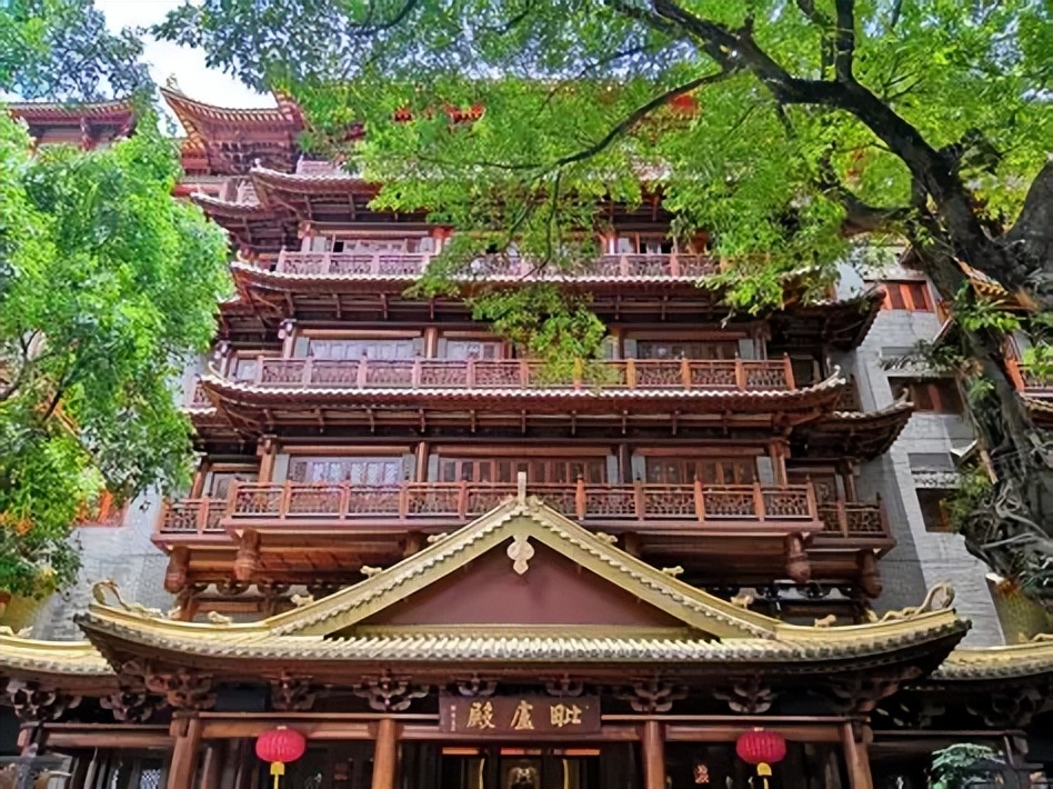 广州大佛寺广州佛教“五大丛林”之一的大佛寺始建于南汉时期(公元917—971年),康熙二年(公元1663年),平南王尚可喜自捐王俸重建佛寺,大雄宝殿占地面积达到一千二百七十七平方米,且正中供奉三尊以黄铜精铸高6米、重10吨的大佛像而得名。