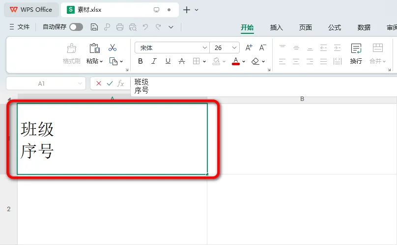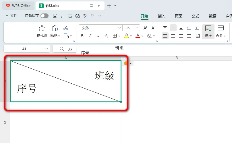 1.左键双击单元格,将光标定位到「班级」和「序号」中间位置,同时按下键盘上的「Alt+Enter」组合键,实现强制换行。