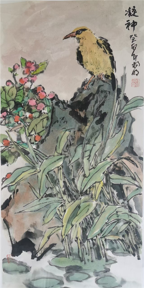 2025年10月28日,2025维多利亚国际拍卖会上的当代书画专场上,当代著名画家杨明老师的一副花鸟《凝神》引发全场最激烈竞拍,历经30多轮激烈角逐,最终被行风伟业的智成总裁以988号号牌落锤成交价850万的金额获得。
