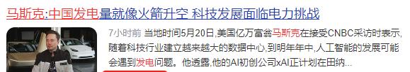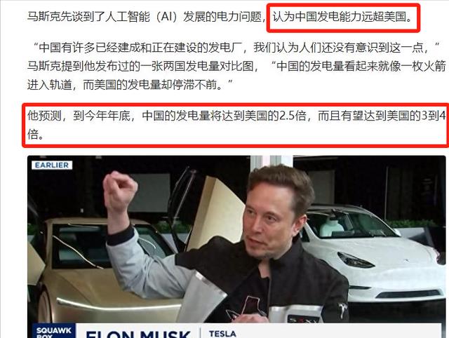 马斯克甚至坦白地预测,到今年年底,中国的发电量都有可能达到美国的三四倍。