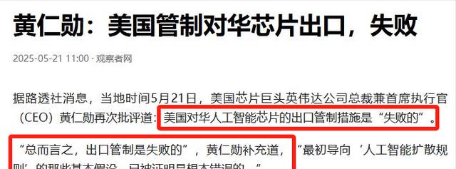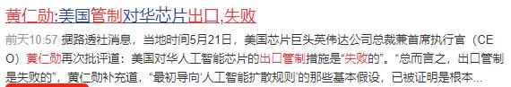 21日黄仁勋在采访时毫不客气地指出,美国正在实行的出口管制措施是“失败”的。
