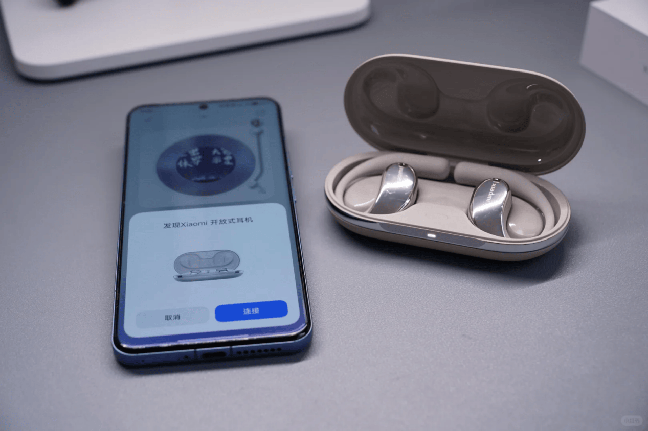 Xiaomi 开放式耳机在佩戴设计上突破传统局限,选用柔性镍钛记忆金属构建螺旋形态的耳挂结构,触摸起来柔软亲肤。经过人体工学设计优化的弧面外观,既保证了佩戴时的稳固度,又兼顾了佩戴舒适度,日常通勤、运动健身等不同场景都能灵活适配。