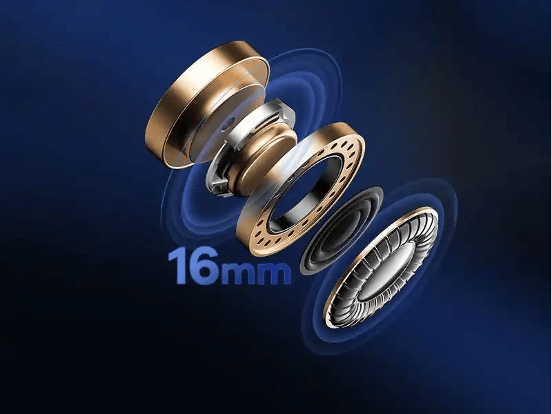 音质表现方面,专属的超线性发声单元与类金刚石 DLC 振膜相互搭配,不仅强化了低频表现,还拓宽了音域覆盖范围。它独有的 10mm 反向声波模块,借助主动声波抵消技术形成隔音屏障,可有效降低 82% 的通话漏音情况,为用户打造更私密的聆听环境。