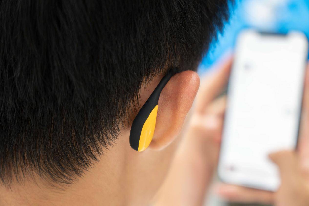 结构设计上,这款耳机采用耳夹式方案,设备主体通过柔性硅胶带连接发声单元与电池仓,边缘经过光滑曲面处理,搭配磨砂金属材质,能兼容眼镜、帽子等配饰佩戴,避免使用时出现冲突。