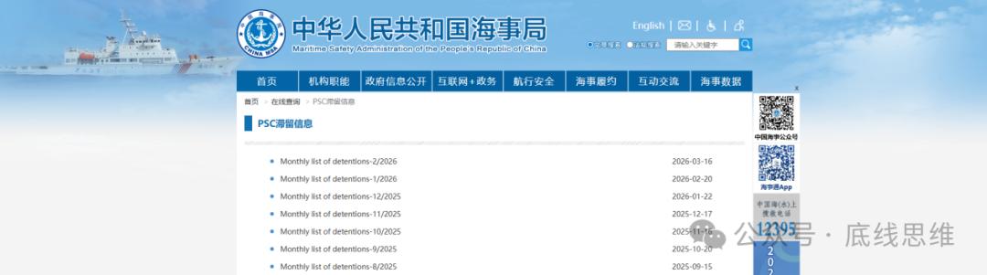 中华人民共和国海事局官方网站港口国监督(PSC)滞留信息
