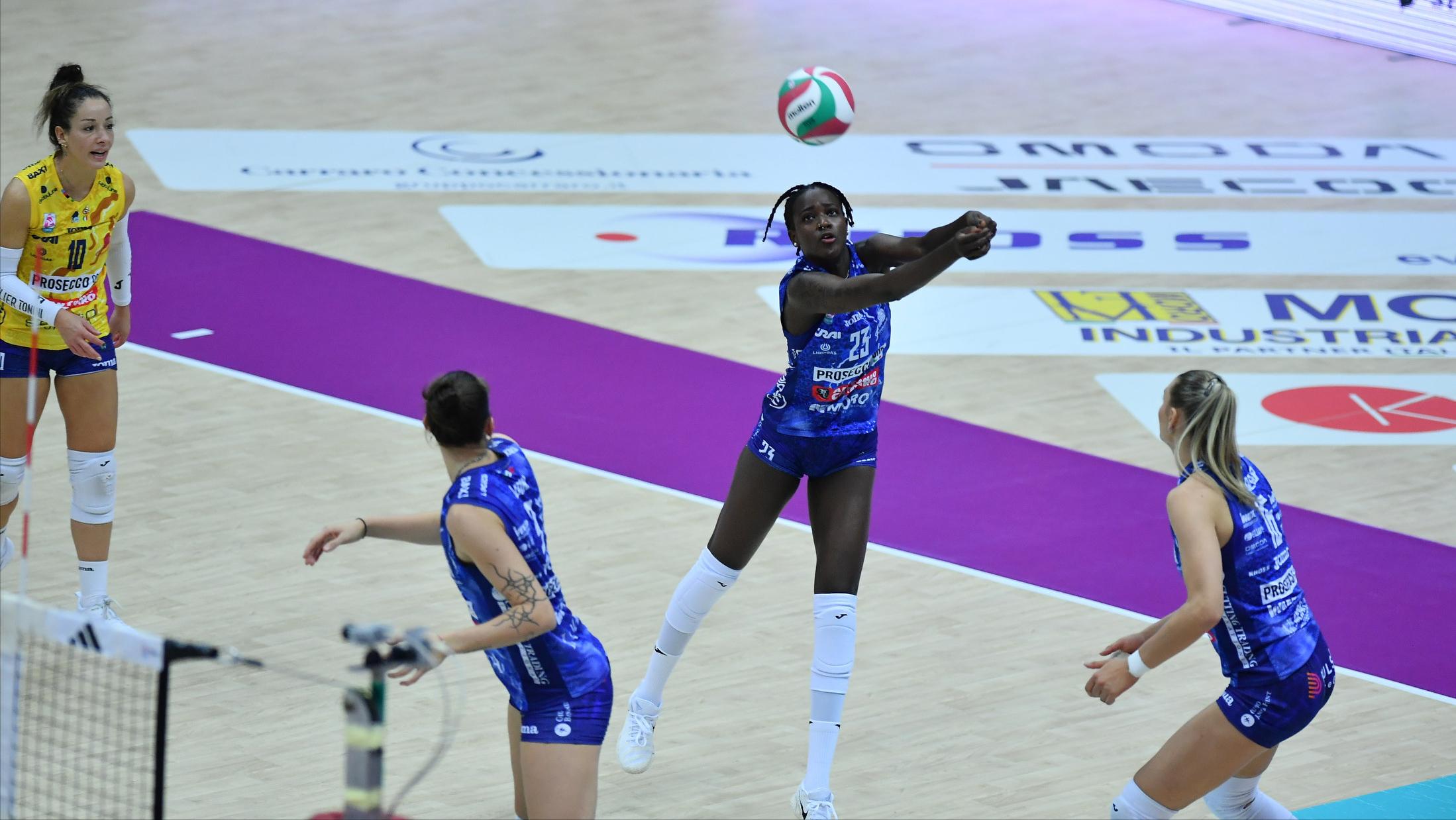 达尔得罗普和西拉打满全场均拿到15分,虽说在进攻端难免失误被拦,但与二传沃沃什的配合更加娴熟。两人承担起球队主接一传的重任,尤其是达尔得罗普,36次一传到位率高达68%。反观基耶里在发球和拦网的技术环节也丝毫不逊色,新科世锦赛冠军主攻内尔维尼得到全队最高的19分,新赛季从佩鲁贾转会的匈牙利外援接应内梅斯得到17分,30扣12中3拦2发,在二号位的拦网给科内利亚诺的主攻带来一定压力。作为上赛季意甲联赛中仅次于安特罗波娃的第二得分点,内梅斯有望在基耶里继续发挥高水平。