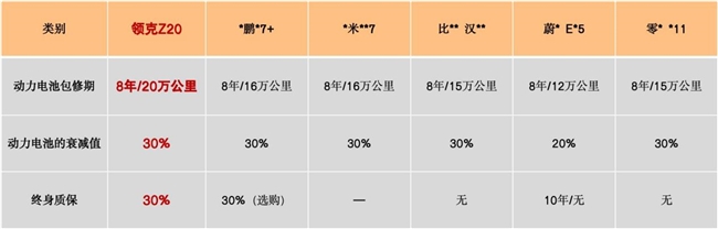 就拿过去的市场情况来说,一些车企为了增强产品竞争力,在三电质保方面不断发力。某些品牌的动力电池 8 年 / 16 万公里衰减不大于 30% 的质保标准,已经处于行业上游水平。不过,汽车行业的发展日新月异,各品牌都在努力突破。在这样的大环境下,领克品牌针对旗下的领克 Z20 车型,在三电质保政策上做出了调整,在行业内引发了广泛关注。