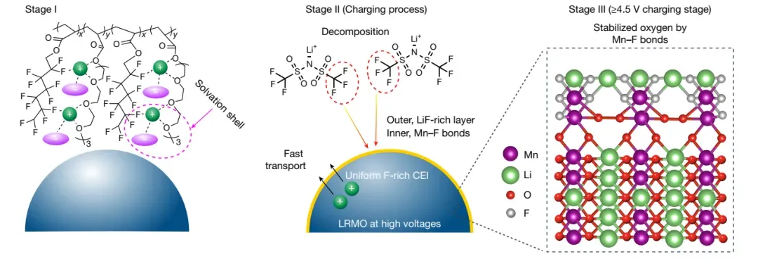 简单说就是他们用含氟基团搞出了个“-F∙∙∙Li⁺∙∙∙O-”配位结构,这玩意儿既解决了界面接触问题,又拓宽了电压窗口。