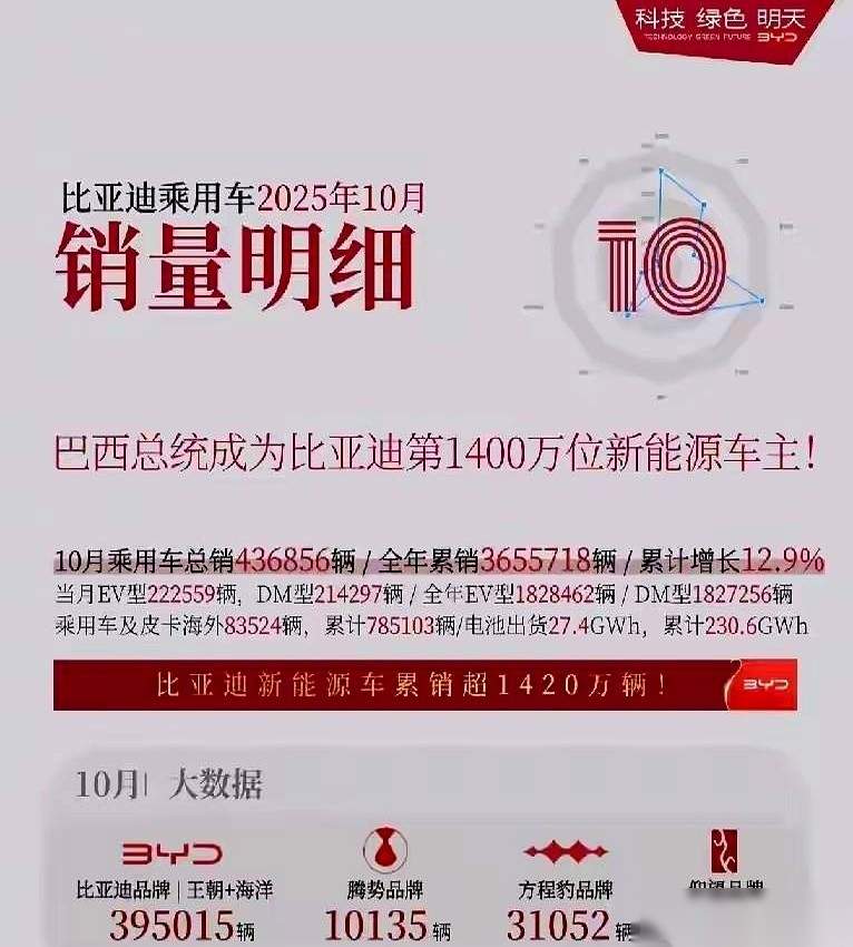 十月销量降到43万,比去年减少快7万,这个数字放在别的企业算是顶尖成绩,但对比亚迪来说,市场早已习惯比亚迪月销超过50万,连续几个月没达到目标,即便比亚迪还是行业第一,投资者和员工心里都开始发慌,因为投资者看的不是绝对数值,而是增长势头能不能持续保持下去。