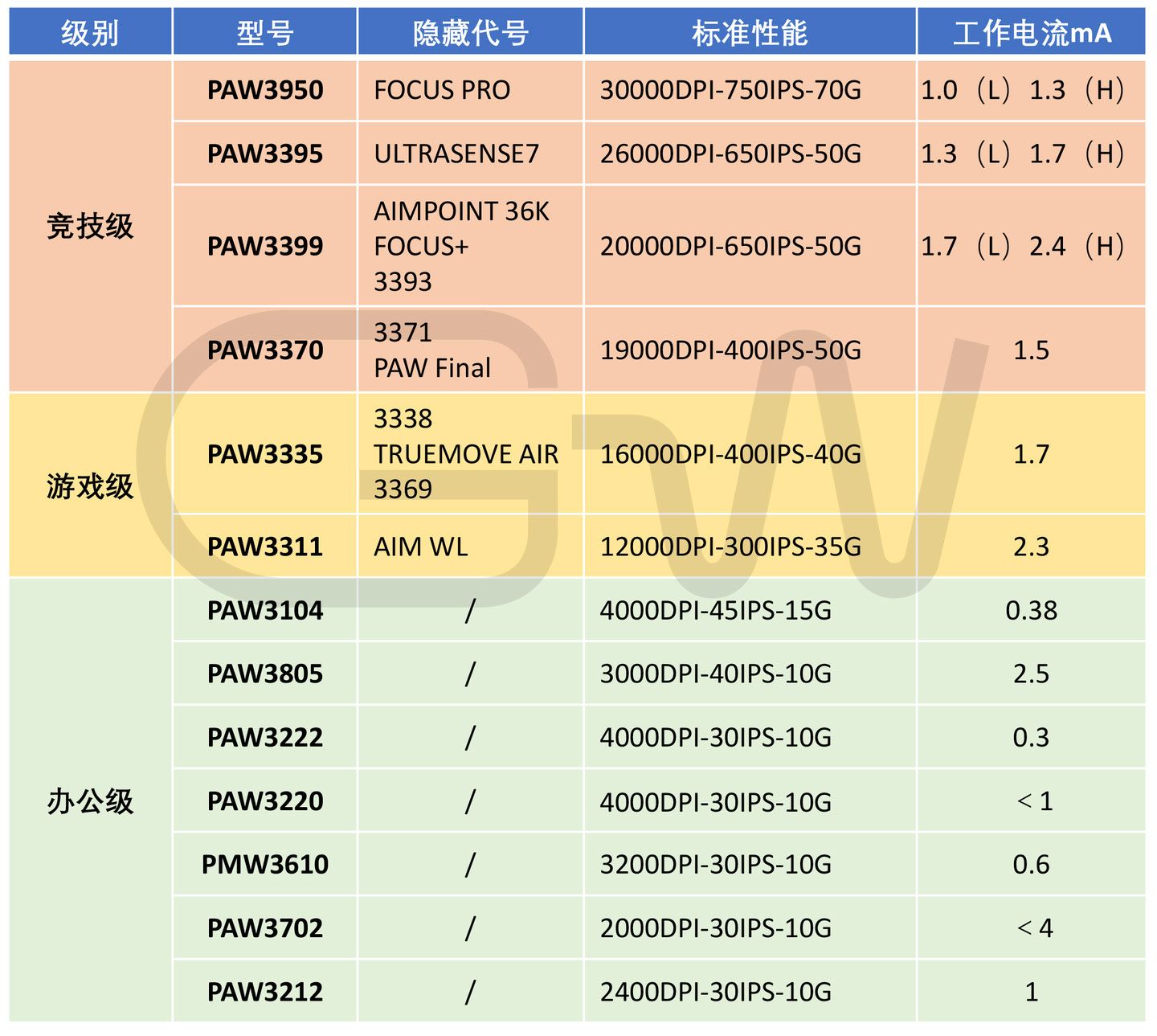 通俗来说,引擎就像鼠标的眼睛,是其获取玩家操作信息的重要来源。对于现在的用户来说,最为熟悉的品牌当属原相,就目前上市的引擎性能排序如下:
