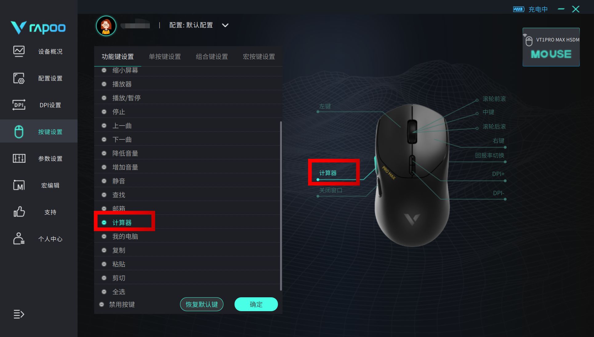 这款鼠标的按键功能可以自由设定,你可以设定单一功能键,也可以设置组合键,让鼠标变得适合自己。